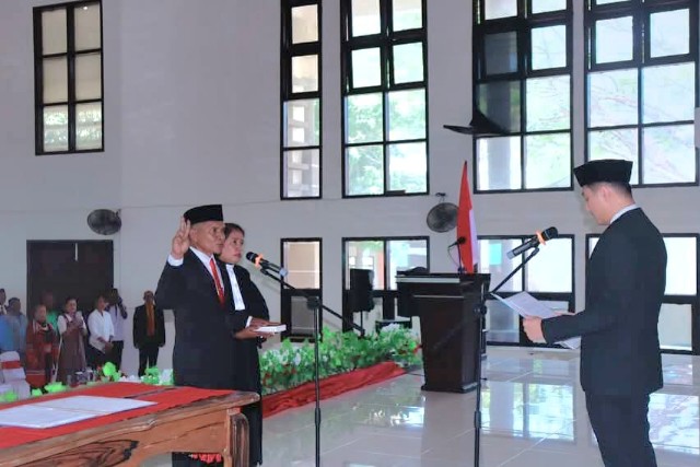 Prosesi pelantikan diawali dengan pengambilan sumpah jabatan, yang dipimpin langsung oleh Bupati Ricky Jauwerissa dan didampingi oleh Pendeta Ny. M. Sabono, S.Th. Hadir dalam kesempatan tersebut antara lain Inspektur Daerah Kabupaten Kepulauan Tanimbar serta Kepala Dinas Perikanan Kabupaten Kepulauan Tanimbar sebagai saksi.