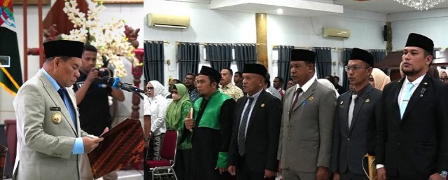 Pelantikan tersebut digelar dalam prosesi pengambilan sumpah dan janji jabatan yang berlangsung khidmat, disaksikan unsur Forkopimda serta jajaran aparatur sipil negara.