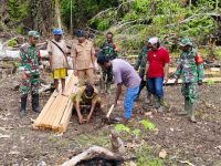 Anggota Koramil Fakfak Timur Bersama Pemerintah dan Warga Tanam Pohon Keras