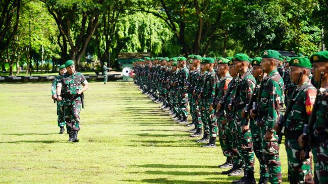 “Tugas yang kalian laksanakan bukanlah tugas yang mudah, tantangan yang dihadapi sangatlah kompleks mulai dari medan yang berat hingga situasi sosial dan budaya yang beragam,” ujar Pangdam dalam amanatnya.
