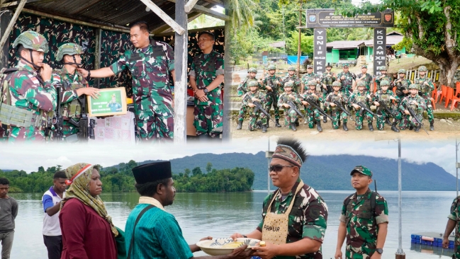 Kaimana – Komandan Korem (Danrem) 182/JO, Kolonel Inf Irwan Budiana, S.E., M.M., M.Han., mengunjungi Pos Teluk Arguni Satgas Pamtas Yonif 642/KPS di Distrik Teluk Arguni, Kabupaten Kaimana, Papua Barat, Minggu (16/6/2025).