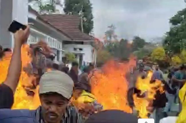 Peristiwa itu terjadi ketika massa hendak membakar ban bekas sebagai bentuk protes. Namun, aksi tersebut dihalangi aparat keamanan yang berjaga. Ketegangan memuncak saat salah seorang peserta aksi menyiramkan bensin. Tumpahan bahan bakar mengenai beberapa orang di kerumunan.