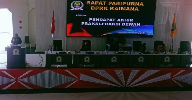 Pandangan umum fraksi ini disampaikan juru bicara Yesaya Efara dalam sidang paripurna di ruang sidang DPRK Kaimana, Senin (29/9/2025).