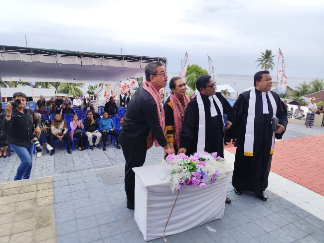 Larat — Gubernur Maluku Hendrik Lewerissa, meresmikan Gedung Gereja Baru LYAWAN SORU milik Jemaat Gereja Protestan Maluku (GPM) di Desa Watidal, Kecamatan Tanimbar Utara, Kabupaten Kepulauan Tanimbar, Provinsi Maluku, Minggu (27/7/2025).