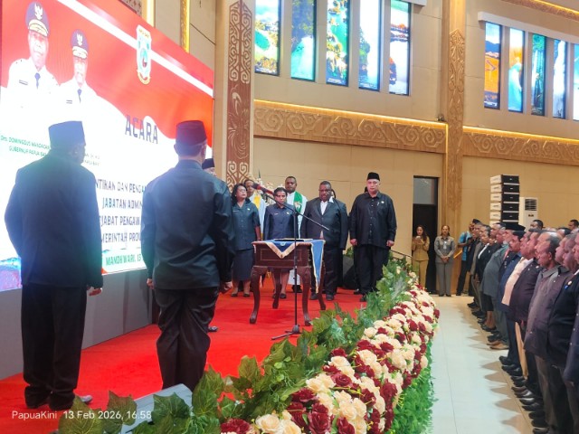 Manokwari– Gubernur Papua Barat, Dominggus Mandacan, melantik 295 pejabat administrator dan pengawas di lingkungan Pemerintah Provinsi Papua Barat, Jumat (13/2/2026), di Manokwari.