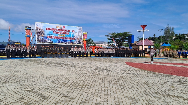 Dalam peringatan tahun ini, Polri mengusung tema “Polri untuk Masyarakat”. Tema ini menurut Kapolda, merupakan cerminan komitmen untuk terus meningkatkan pelayanan terbaik serta memperkuat peran Polri sebagai pelindung dan pengayom masyarakat.