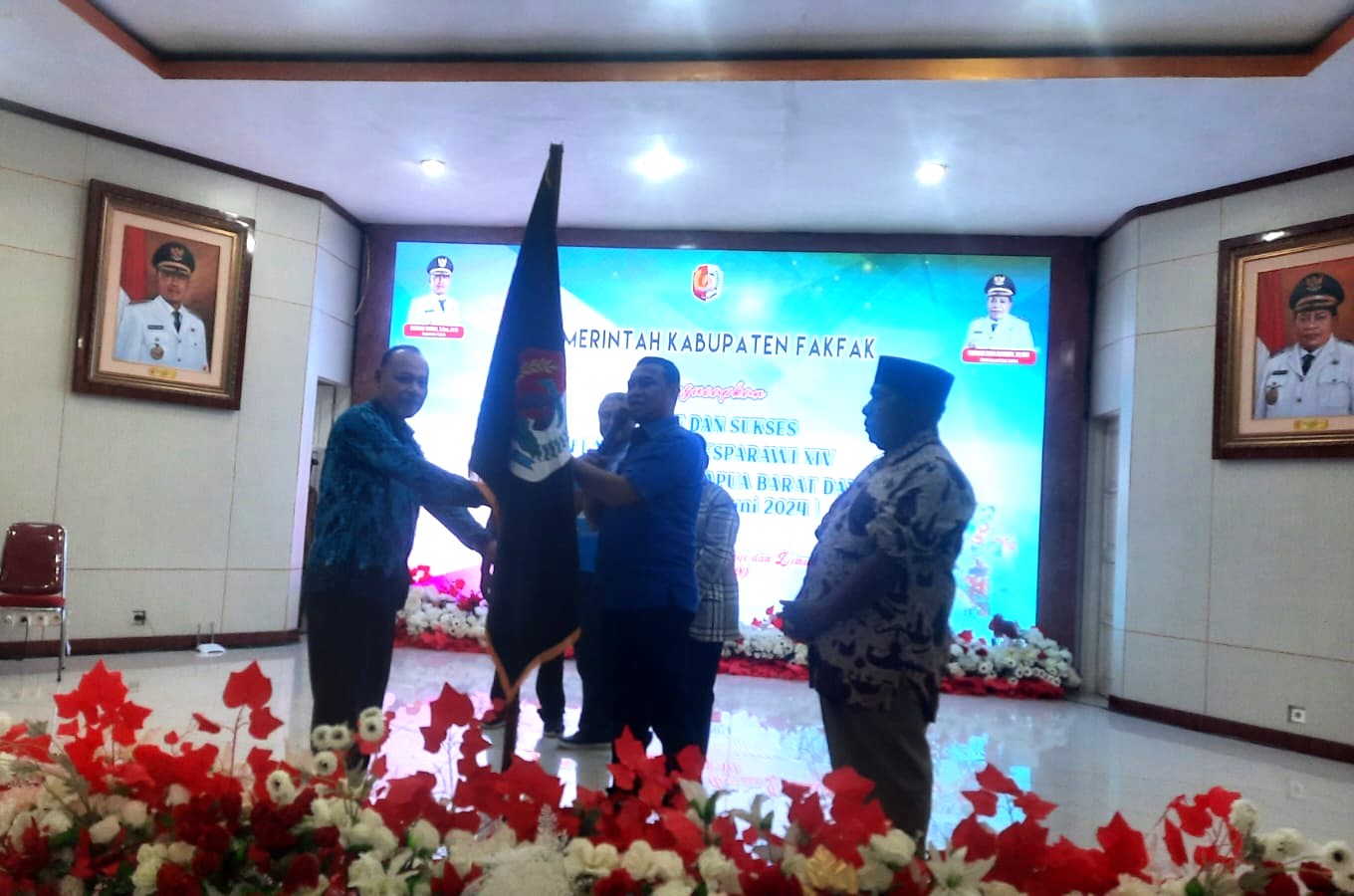 Fakfak – Bupati Fakfak Untung Tamsil resmi melepas keberangkatan kontingen Pesta Paduan Suara Gerejawi (Pesparawi) Kabupaten Fakfak, di gedung Winder Tuare Kabupaten Fakfak, Kamis (13/6/2024) sore ditandai penabuh tifa.