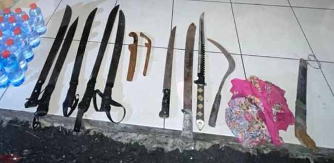 Dalam razia yang menyasar warga yang masih beraktivitas pada malam hari serta lokasi-lokasi yang dicurigai sebagai tempat peredaran miras tersebut, petugas berhasil mengamankan 12 bilah parang dan 2 buah badik.