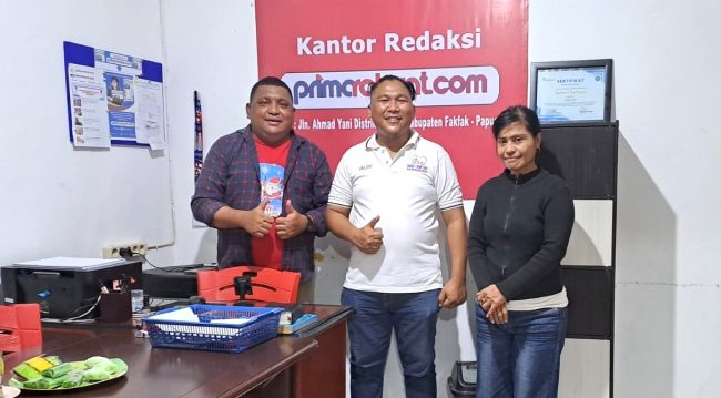 Kedatangan Pdt. Valdy sapaan akrabnya disambut hangat oleh Pemimpin Redaksi PrimaRakyat.com, Salmon Teriraun bersama Sarah Alfon Sinah Slaramanat administrasi PT. Prima Kabar Utama (PrimaRakyat.com) dalam suasana akrab, keduanya berdiskusi tentang pelayanan kemanusiaan yang tengah dijalani Pdt. Valdy, khususnya pelayanannya bagi para pasien di RSUD Fakfak.