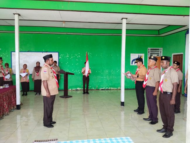 Ketua Kwartir Cabang Fakfak, Kak Hermanto Hobrouw, S.Pd, M.Pd, melantik unsur Majelis Pembimbing Ranting yang diwakili Wakil Ketua I, yakni Kapolsek Bomberay, karena Ketua Mabiran berhalangan hadir.