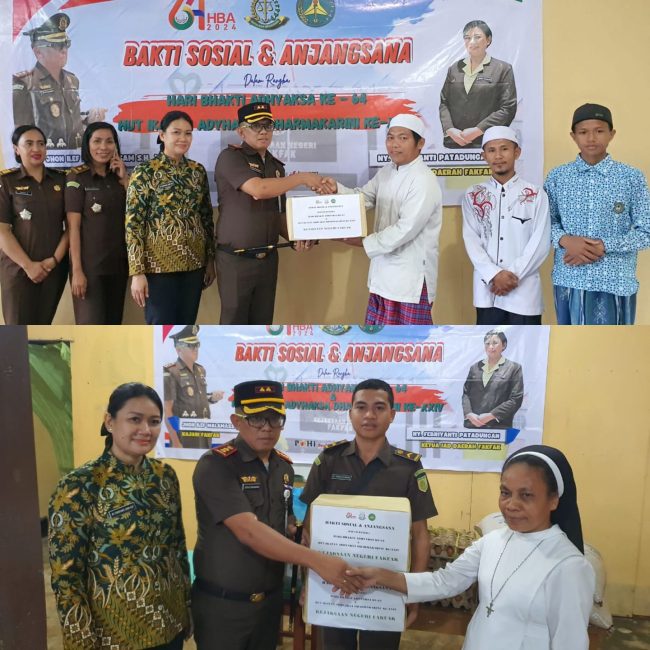 “Bakti sosial dan anjangsana berupa kegiatan kunjungan pernaja sebagai bagian rasa cinta kami terhadap keluarga kejaksaan dan kegiatan kunjungan ke Pesantren Hidayatullah dan Asrama Putri Santa Theresia. Hal ini merupakan bentuk hadirnya Kejaksaan di tengah-tengah masyarakat untuk menjaga kearifan lokal, kedekatan dan silaturahmi kejaksaan,” ujar Kajari Jhon Ilef Malamassam. (pr)