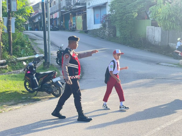 Sementara itu, 12 personel Sat Samapta turut memperkuat pengamanan di kawasan padat aktivitas dan lingkungan sekolah. Polisi terlihat membantu pelajar menyeberang jalan, menertibkan pengendara, serta mengatur arus kendaraan dengan pendekatan humanis.