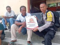Bhabinkamtibmas Tanama Bersama Kepala Kampung Pasang Pamflet Himbauan Pilkada Damai
