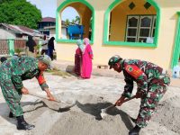 Babinsa Koramil Karas Bantu Warga Pengecoran Halaman Masjid Baitul Maqdis Kampung Malakuli