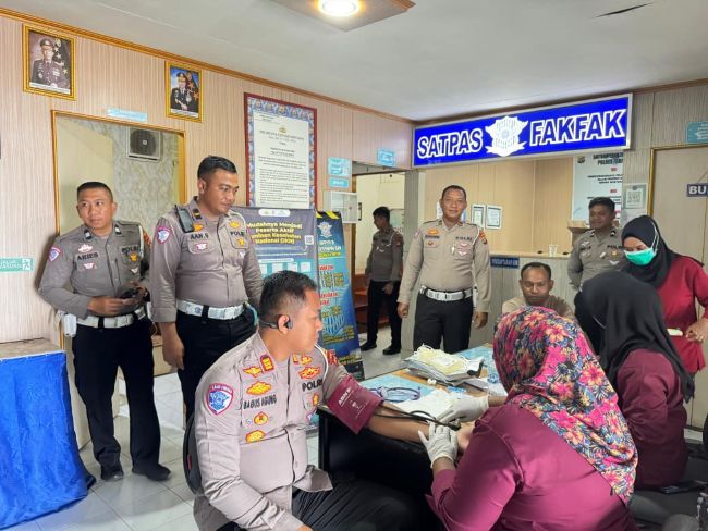 Fakfak – Satuan Lalu Lintas (Sat Lantas) Polres Fakfak menggelar kegiatan donor darah dan bhakti kesehatan dalam rangka memperingati Hari Lalu Lintas Bhayangkara ke-70, Jumat (12/9/2025), di Kantor Lantas, Jalan RA Kartini, Distrik Fakfak.