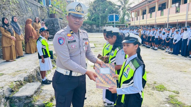 Fakfak – Satuan Lalu Lintas (Sat Lantas) Polres Fakfak menanamkan nilai-nilai disiplin, tanggung jawab, dan kepemimpinan sejak dini kepada para pelajar SMP Negeri 1 Fakfak melalui kegiatan upacara bendera dan penyerahan sertifikat pelatihan Patroli Keamanan Sekolah (PKS), Senin (27/10/2025).