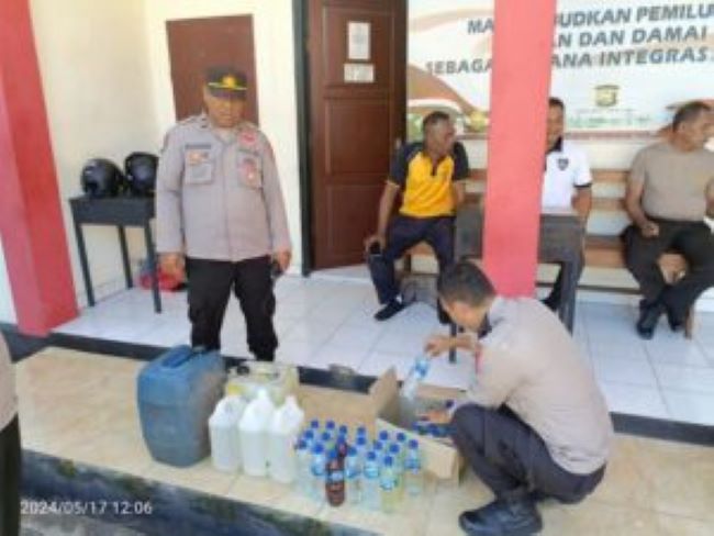 Dalam razia ini tersebut, Personel TNI Polri yang tergabung dalam Operasi Pekat Salawaku 2024 berhasil menyita minuman keras tradisional berupa Sopi sebanyak 31 botol air mineral berisi 600 ml, 1 buah Jerigen berisi Sopi sebanyak 50 Liter, 1 buah Jerigen berisi 35 Liter dan 3 buah jerigen berisi 5 liter berisi Sopi.