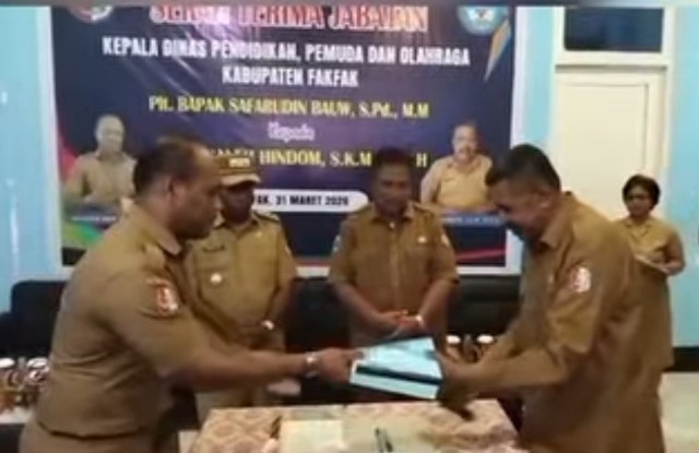 Fakfak — Serah terima jabatan (sertijab) Kepala Dinas Pendidikan, Pemuda, dan Olahraga (Disdikpora) Kabupaten Fakfak berlangsung khidmat pada Senin (31/3/2026).