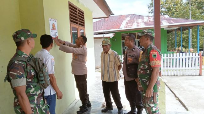 Fakfak – Jelang Pilkada Serentak 2024 Bhabinkamtibmas Kelurahan Fakfak Tengah sekaligus Bapospol dan Babinsa melakukan Pemasangan Pamflet Himbauan Pemilu Damai 2024 yang aman dan damai di Wilayah Kelurahan Danaweria dan Kampung-kampung Sedistrik Fakfak Tengah.