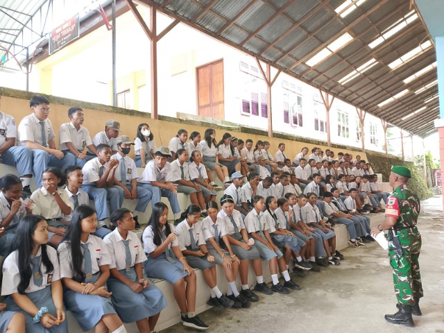 Fakfak — Babinsa Koramil 1803-01/Fakfak, Serma Ramli Nasir, menggelar sosialisasi penerimaan prajurit TNI Angkatan Darat Gelombang II Tahun Anggaran 2026 di SMA Santo Don Bosco, Distrik Fakfak, Papua Barat, Senin (20/4/2026).