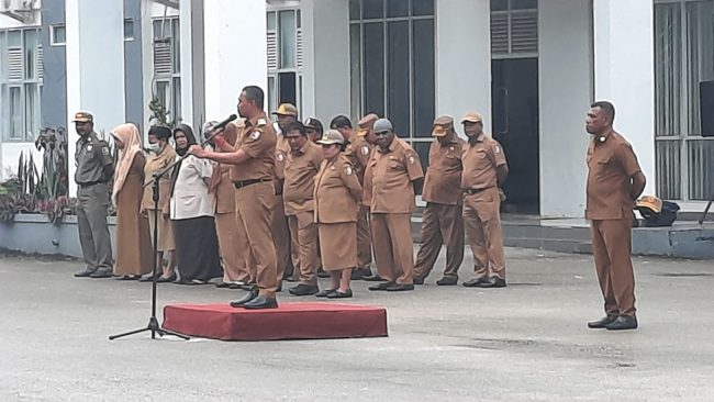 Fakfak – Meski hujan tidak menyurutkan niat Aparatur Sipil Negara (ASN) dilingkungan Pemerintah Kabupaten (Pemkab) Fakfak mengikuti apel mendengarkan arahan Bupati Fakfak Untung Tamsil di Lapangan Kantor Bupati Fakfak, Senin (13/5/2024) pagi