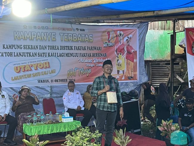 Itu disampaikan Calon Bupati Fakfak Untung Tamsil dalam orasi politiknya pada kampanye terbatas di Kampung Sekban Distrik Pariwari Kabupaten Fakfak, Papua Barat, Jumat (11/10/2024).