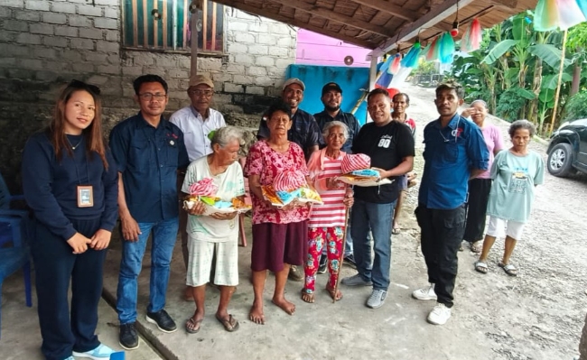 Saumlaki – Menyambut Hari Pendidikan Nasional, Wakil Pemimpin Redaksi Tifa Tanimbar Elias Jems Masela bersama Direktur Utama Ironimus Yempormas dan Pemimpin Redaksi Simon Lolun membagikan 50 paket sembako kepada janda dan duda di Kota Larat, Kecamatan Tanimbar Utara, Kamis (1/5/2025).